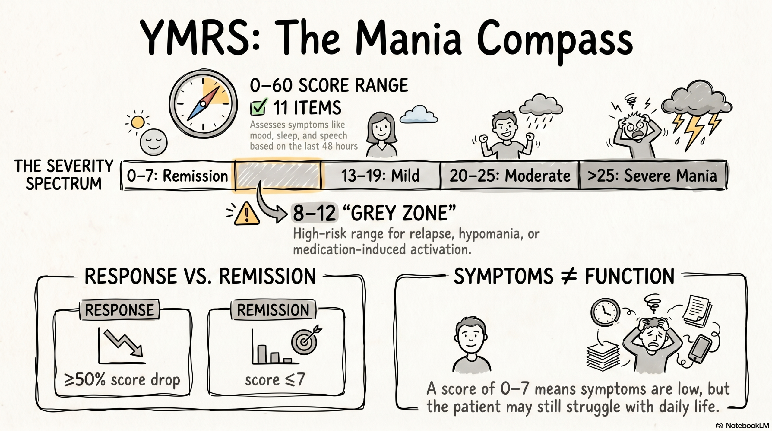 Mania Young Mania Rating Scale (YMRS): How to Interpret Severity, Define Remission, and Use It in Real-World Practice Apr 15 2026 Read